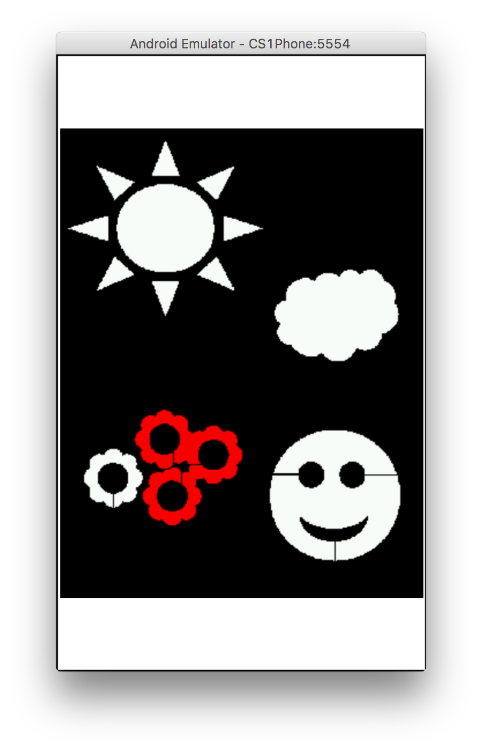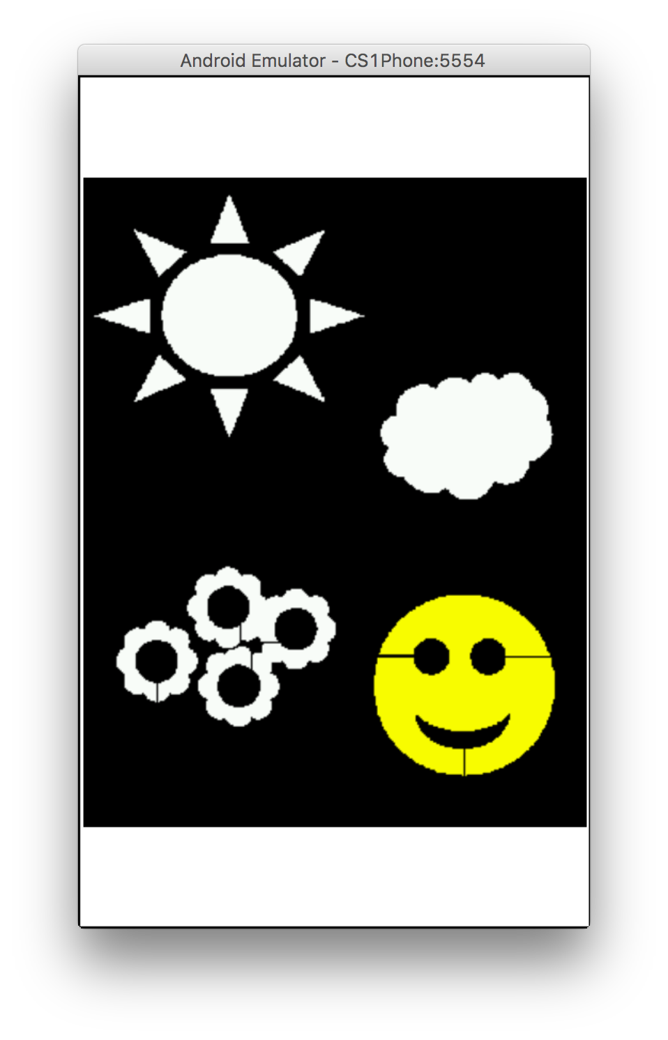 Note: Make sure to add an outline for each circle as shown in the images above. Recall that to accomplish this effect we can use "fillColor(outlineColor)|lineWidth" when specifying shape color.
