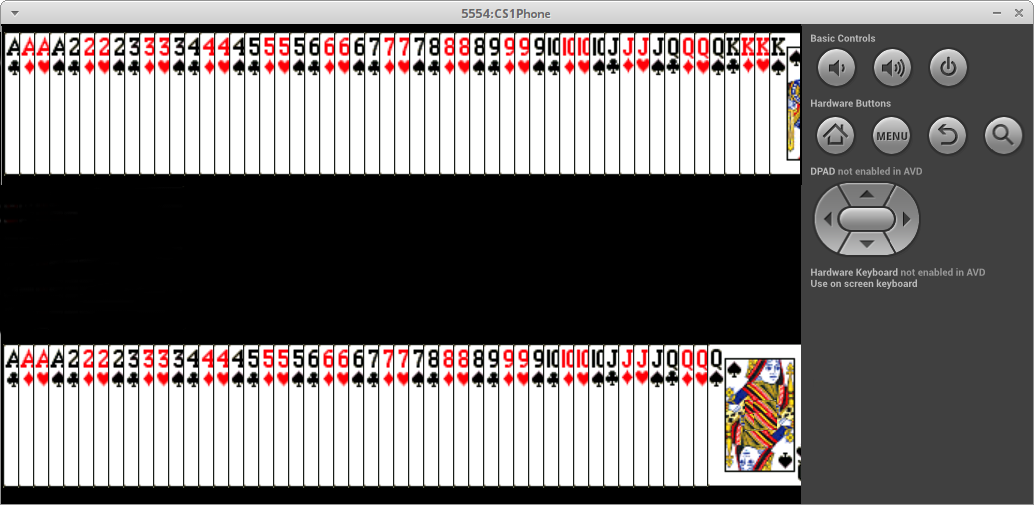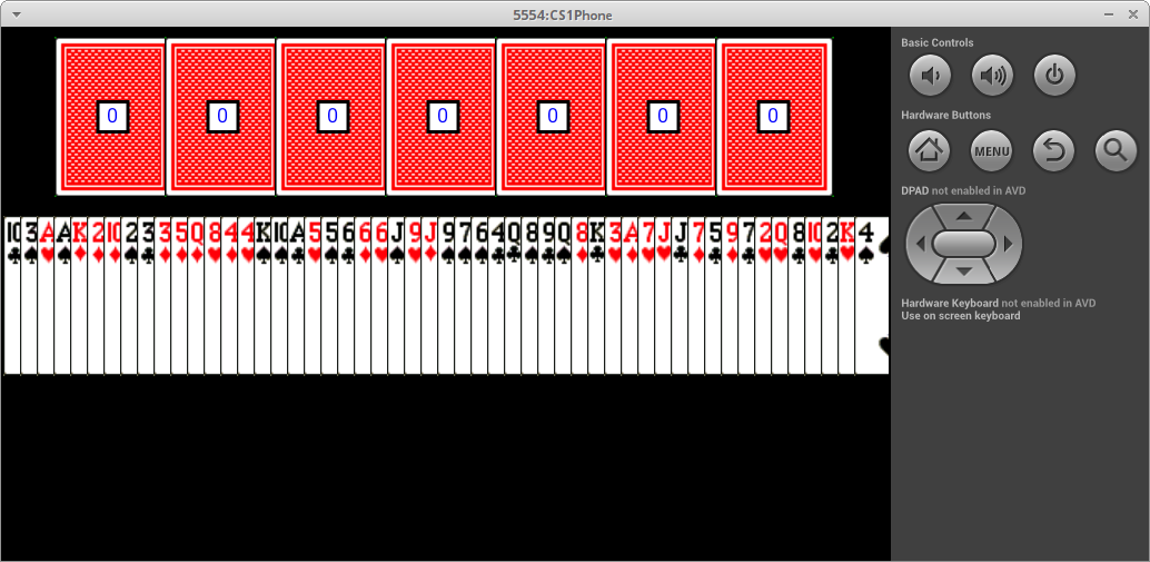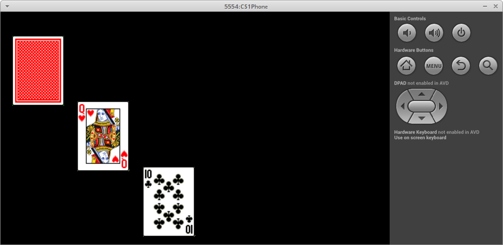 draw( y, ? ) -- draws the cards in the deck at the given y level such that the left-most card touches the left edge of the canvas/phone and the centers of the cards are exactly 10 pixels apart