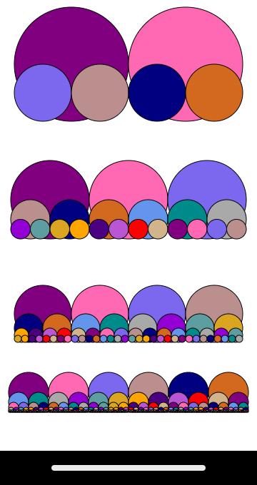 drawCirclesForest( 40, 550, 28, 6 );