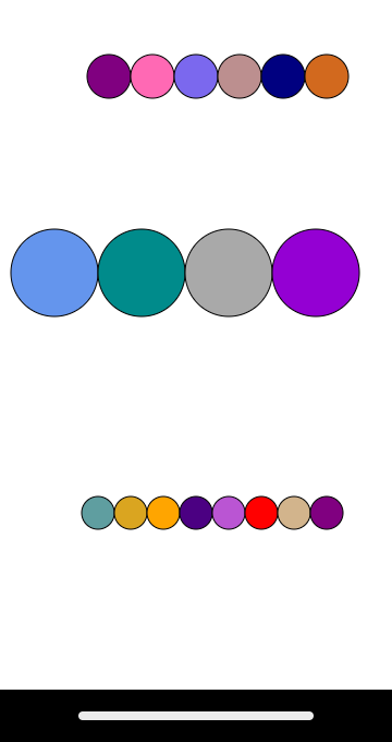 drawCirclesRow(100, 70, 20, 6);