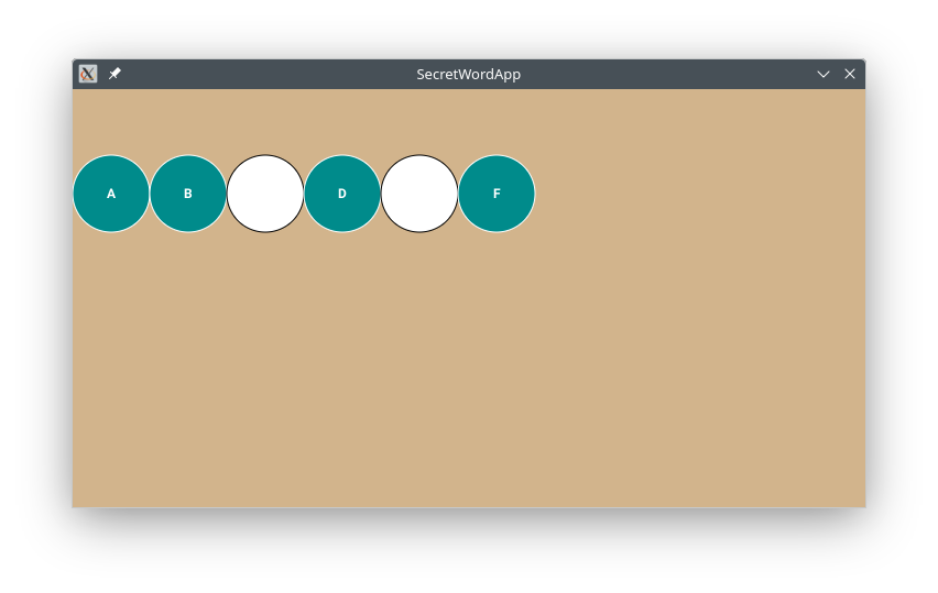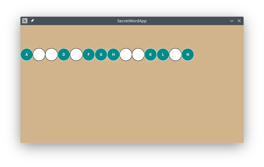 This method draws the given alphabet string as a row of circles of the given radius. The y-level is one fourth of the canvas height.