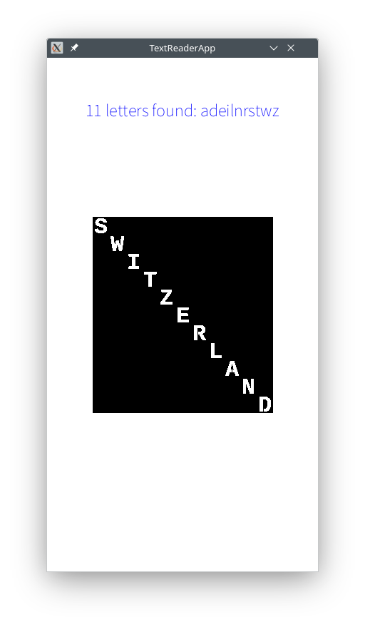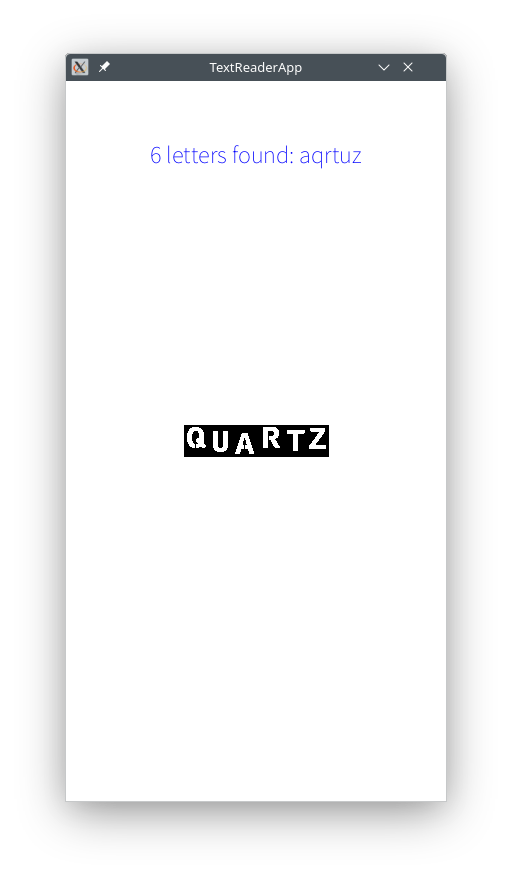 int[][] taxiImage = canvas.readImage( "taxi1.png" ); String letters = findLetters( taxiImage, 4 ); System.out.println( "top 4 letters in taxi1.png are " + letters ); // displays AITX letters = findLetters( taxiImage, 3 ); System.out.println( "top 3 letters in taxi1.png are " + letters ); // displays AIT letters = findLetters( taxiImage, 1 ); System.out.println( "top 1 letters in taxi1.png are " + letters ); // displays A int[][] taxiTiltedImage = canvas.readImage( "taxi2.png" ); letters = findLetters( taxiTiltedImage, 4 ); System.out.println( "top 4 letters in taxi2.png are " + letters ); // displays ? int[][] quartzImage = canvas.readImage( "quartz1.png" ); String letters = findLetters( quartzImage, 6 ); System.out.println( "top 6 letters in quartz1.png are " + letters ); // displays AQRTUZ letters = findLetters( quartzImage, 5 ); System.out.println( "top 5 letters in quartz1.png are " + letters ); // displays AQRTU letters = findLetters( quartzImage, 1 ); System.out.println( "top 1 letters in quartz1.png are " + letters ); // displays A int[][] quartzTiltedImage = canvas.readImage( "quartz2.png" ); letters = findLetters( quartzTiltedImage, 6 ); System.out.println( "top 6 letters in quartz2.png are " + letters ); // displays ?