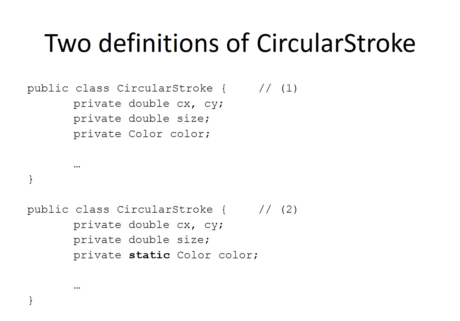 - non-static variable: any variable that uniquely belongs to an object should be non-static.
